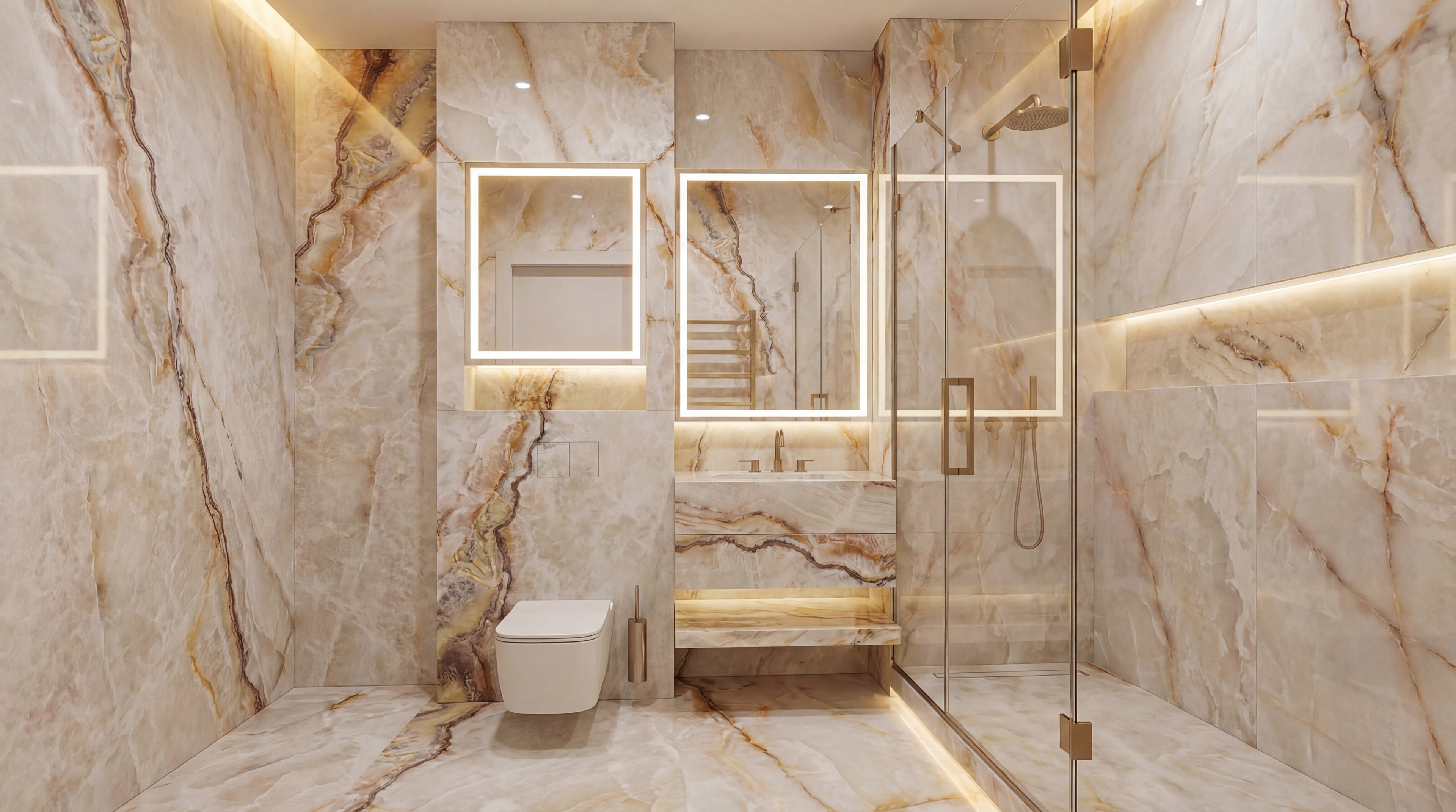 Interruptor de luz completamente oculto detrás del marmol o porcelanico.
